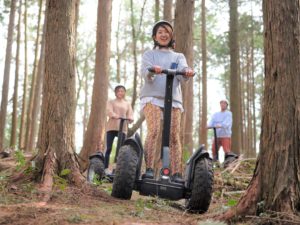 オフロードタイプのセグウェイに乗って、自然いっぱいの森の中へご案内します。初心者でもガイドが丁寧にナビゲートしてくれるので安心です。