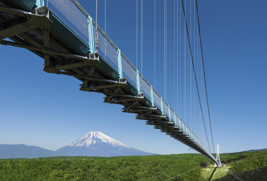 富士山と駿河湾を望む日本一長い吊り橋では、400mの橋を渡りながら感じる風や絶景を楽しめる空中散歩が体験でき、日常を忘れさせてくれます。橋を渡った先には、様々なアクティビティがあり大人から子どもまで楽しめる仕掛けがたくさんあります。勇気を出して「ロングジップスライド」に挑戦すれば、富士山を横目に爽快な空の旅を体験できます。