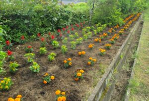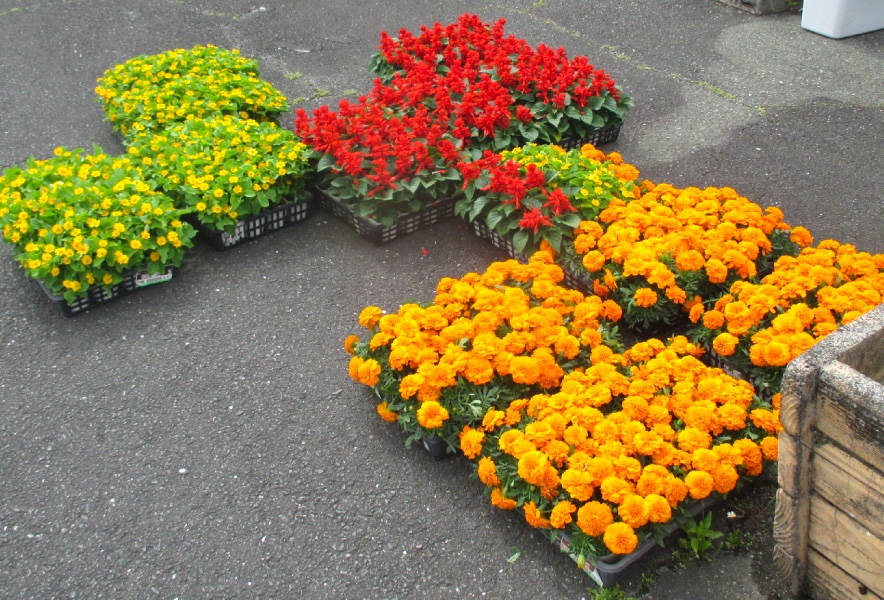 サルビア、メランポジウム、マリーゴールドは、一年草で開花期が長いことが特徴です。