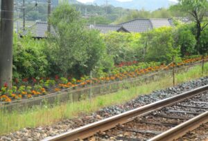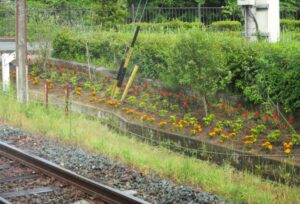 フルーツパーク駅の植栽地に新しく3種類の美しい花が仲間入りしました。咲き誇る花たちが皆様の心を癒してくれますので、ぜひご自身の目で、その美しさを直接見て感じてみてください。お越しいただけるのを心よりお待ちしています。