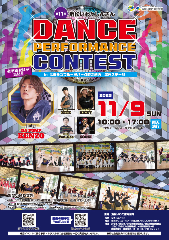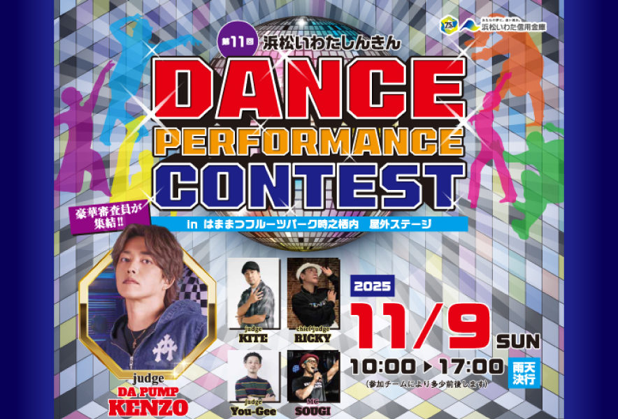 心地よい秋の風が吹く2025年11月9日(日)、はままつフルーツパーク時之栖 屋外ステージで、「第11回浜松いわたしんきんダンスパフォーマンスコンテスト」が開催されます!