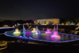 100万球の壮大な光が、夜空の下で華やかな花々をさらに美しく彩る様子は、まさに「感動の光景」です。