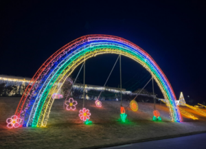 色とりどりに輝く約100万球のLEDライトが、広大な園内をロマンチックに彩ります。光が作り出す輝きと、昼間とは違う表情を見せる花々のコラボレーションはまさに息をのむ美しさ。まさに「花と光が作り出す心温まる装飾」という言葉がぴったりです。