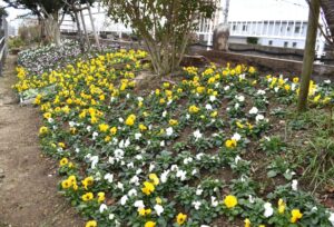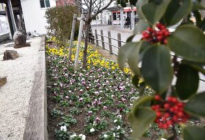 現在、新所原駅の植栽地はパンジーが開花しております。それは圧巻の光景。ぜひ電車でお越しの際には足を止めてご覧ください。お待ちしております!