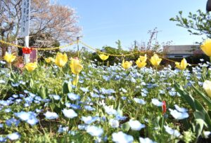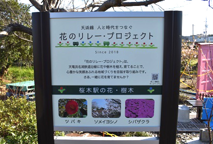 花のリレー・プロジェクトとは、静岡県掛川市のJR東海道線掛川駅から湖西市の新所原駅まで全長67.7㎞を結ぶ天竜浜名湖鉄道(通称:天浜線)の沿線一帯を花で活性化させようと、はままつフラワーパークの塚本こなみ先生に御助力を仰ぎ、浜松いわた信用金庫、はままつフラワーパーク、天竜浜名湖鉄道が三位一体となり2018年にスタートしたプロジェクトです。