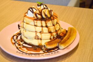 ふるふる揺れるパンケーキは見た目もかわいくて、しあわせな気持ちになるよ。