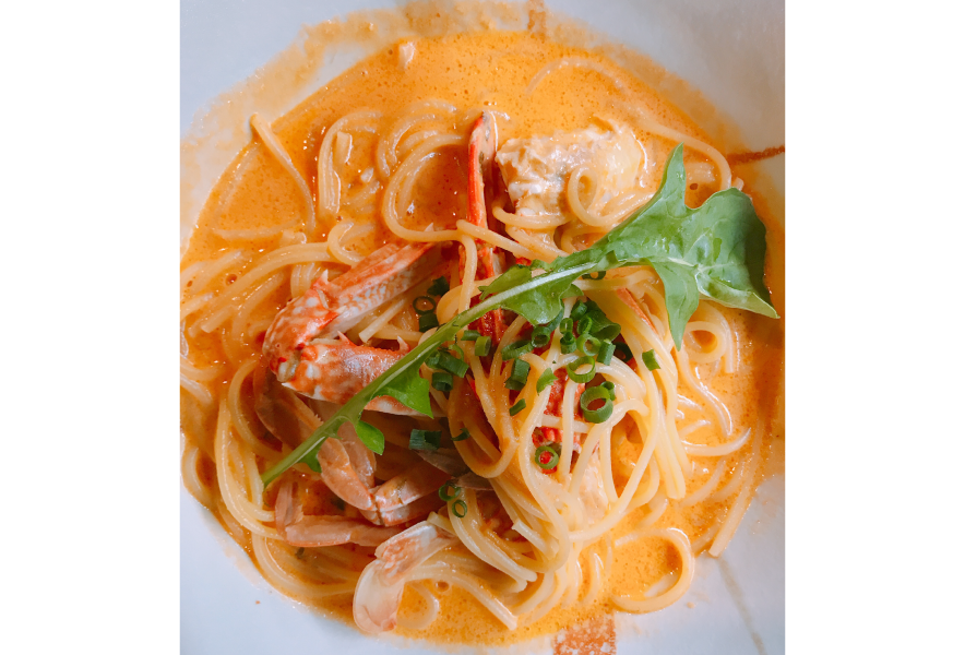 渡り蟹の旨みが溶け込んだ濃厚なトマトクリームソースが特徴。コクがありながら上品な仕上がりで、口コミ評価も高い看板パスタ。ミルポワらしさを感じられる一皿。