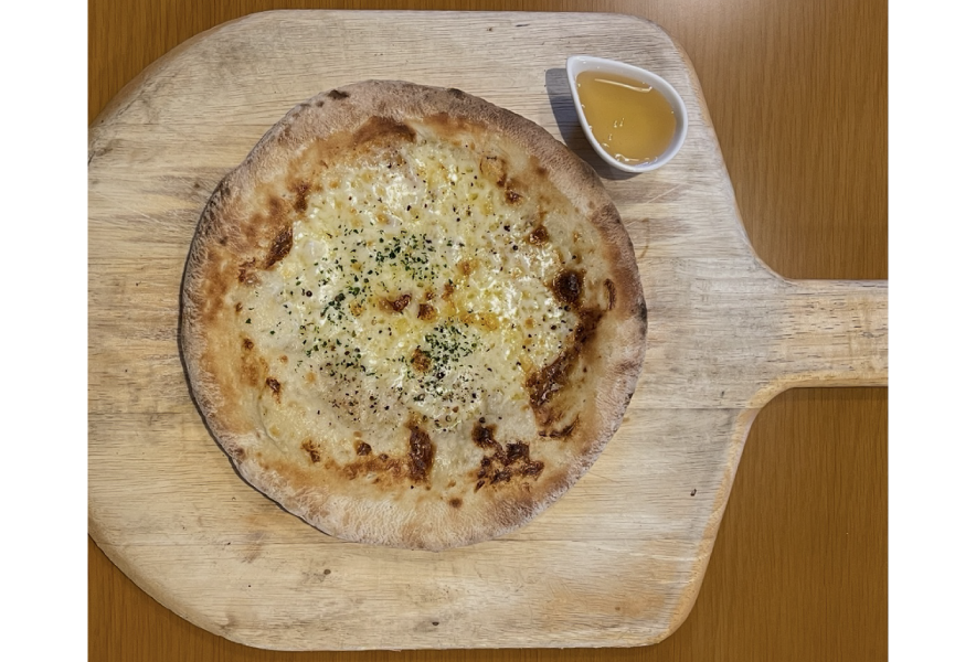 モッツァレラ、ゴルゴンゾーラなど3種のチーズのコクと香りが楽しめる1枚。焼き上げることで旨みが引き立ち、ワインにもよく合います。