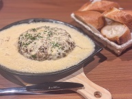 看板メニューの「とろ〜り熱々の陶板焼チーズハンバーグ」は、何度でも食べたくなる一品。肉厚なハンバーグの上にたっぷりとかけられたチーズが全体を包み込み、見た目のインパクトはもちろん、コク深い味わいを堪能できます。