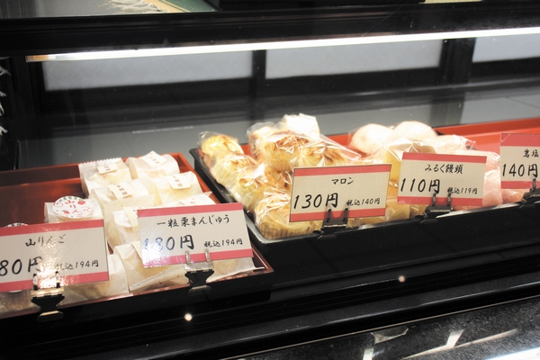 ショーケースには、北海道産の上質な小豆や栗などを使用した和菓子がずらりと並びます。