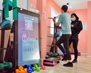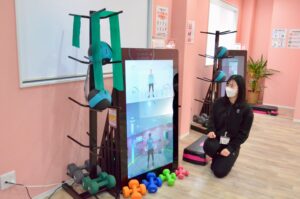 等身大のAIマシンが一人ひとりの動きをサポート。スタッフの事前カウンセリングや声かけもあり、運動初心者の方でも安心して取り組めます。