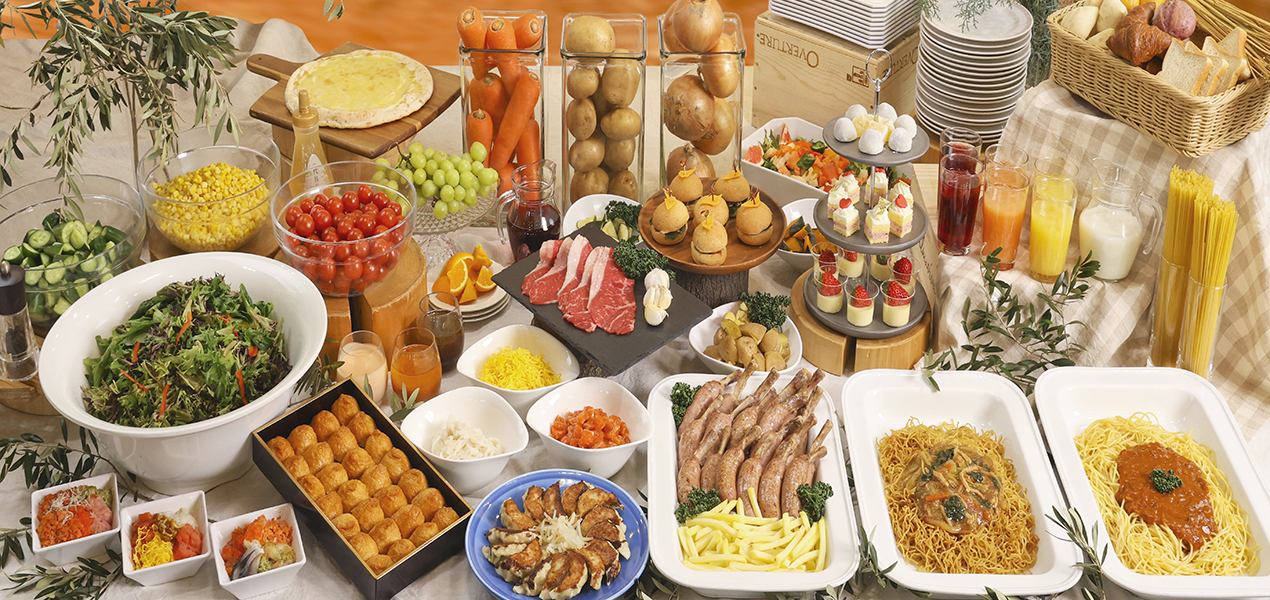 お腹を満たすお食事処。ホテルバイキングプランも人気!