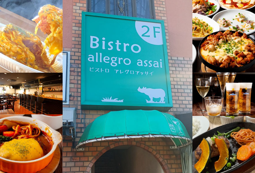 JR草薙駅南口から徒歩1分、レンガ造りのビル2Fにある『アレグロアッサイ』。素材のよさを引き出した手作りの料理にこだわり、鉄板ナポリタン、チーズダッカルビ、パスタ、ピザ、さらに四川麻婆豆腐など、お好みに合わせて選べる多彩なラインナップをご用意しています。また最大30名様までの宴会も可能!誕生日パーティー、歓送迎会、女子会など様々なシーンに対応いたします。