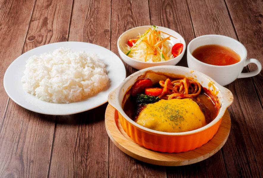 自家製のデミグラスソースで煮込んだ『チェダーチーズの煮込みハンバーグ』は当店の一番人気!ライスとの相性は抜群です。